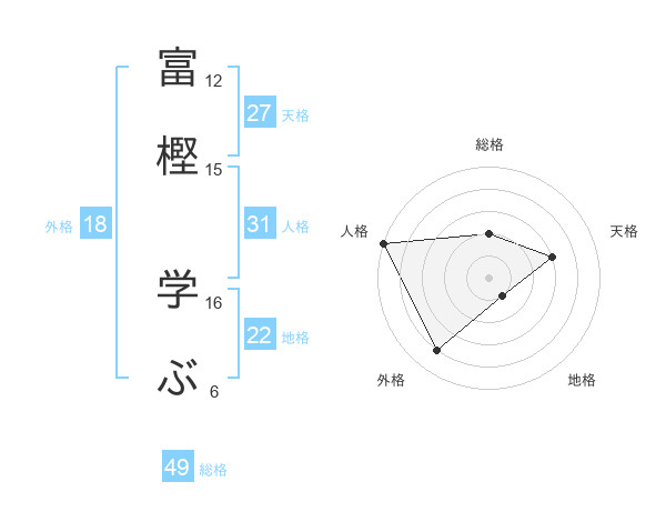 富樫 学ぶさんを姓名の画数から五運を鑑定