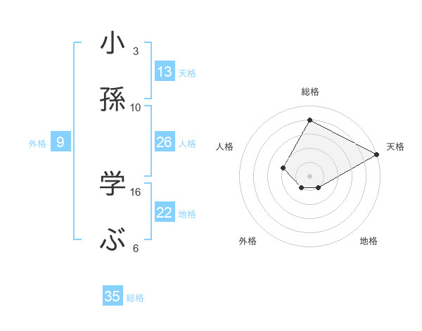 小孫 学ぶさんの天格は13画の5点!