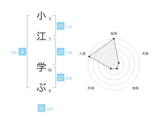 小江 学ぶさんの総格は32画の5点!