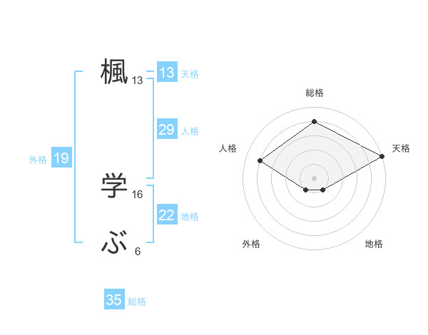 楓 学ぶさんの天格は13画の5点!