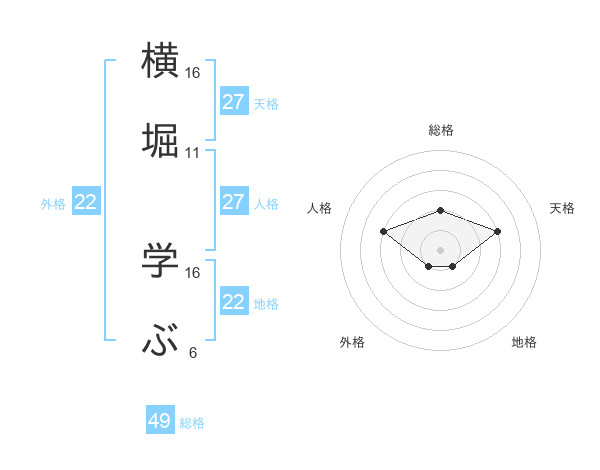 横堀 学ぶさんを姓名の画数から五運を鑑定