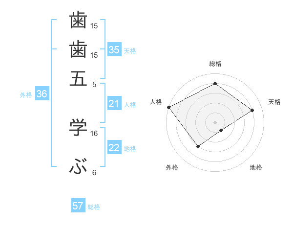 歯歯五 学ぶさんを姓名の画数から五運を鑑定