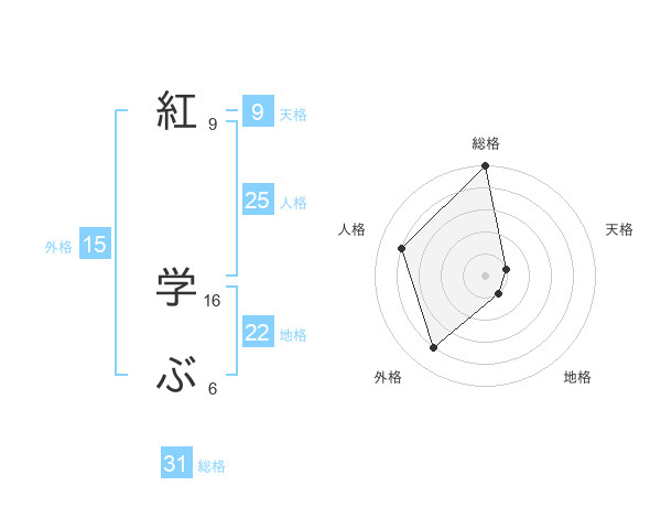 紅 学ぶさんを姓名の画数から五運を鑑定