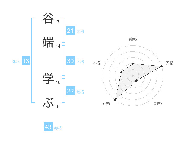 谷端 学ぶさんの外格は13画の5点!