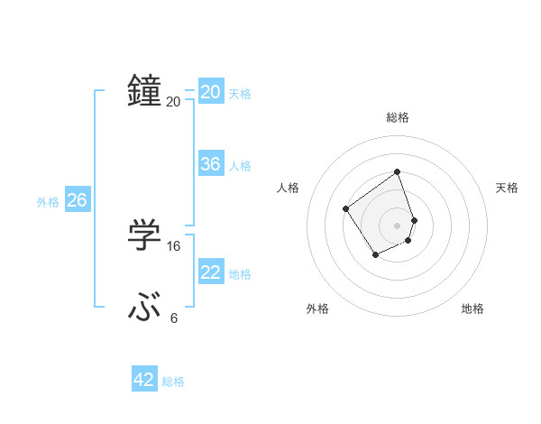 鐘 学ぶさんの天格は20画の1点!