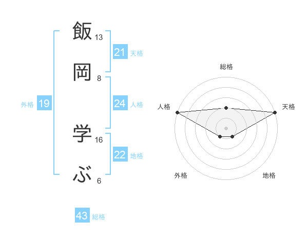 飯岡 学ぶさんの天格は21画の5点!