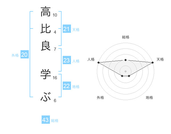 高比良 学ぶさんの天格は21画の5点!