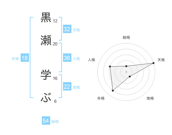 黒瀬 学ぶさんの天格は32画の5点!