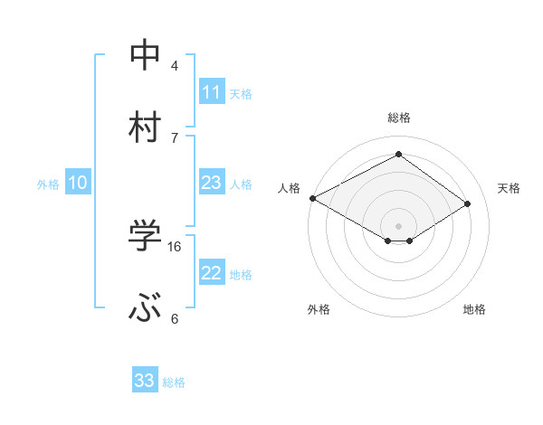 中村 学ぶさんを姓名の画数から五運を鑑定