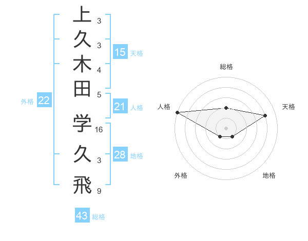 上久木田 学久飛さんの総格は43画の2点