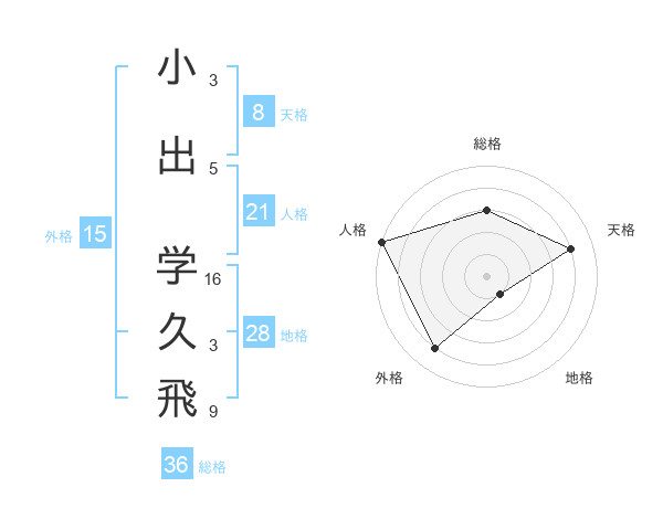 小出 学久飛さんの総格は36画の3点!