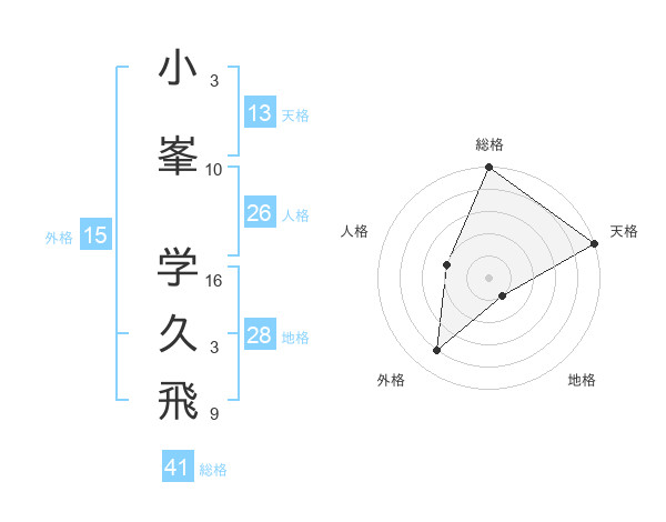 小峯 学久飛さんを姓名の画数から五運を鑑定