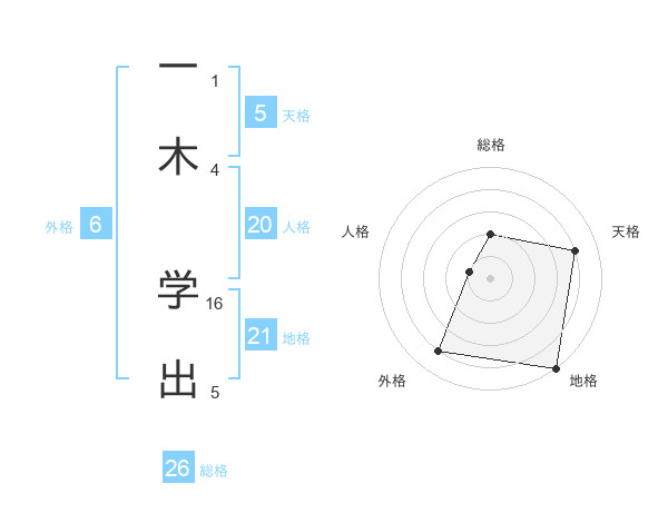 一木 学出さんの地格は21画の5点!