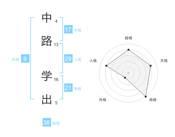 中路 学出さんの天格は17画の4点!