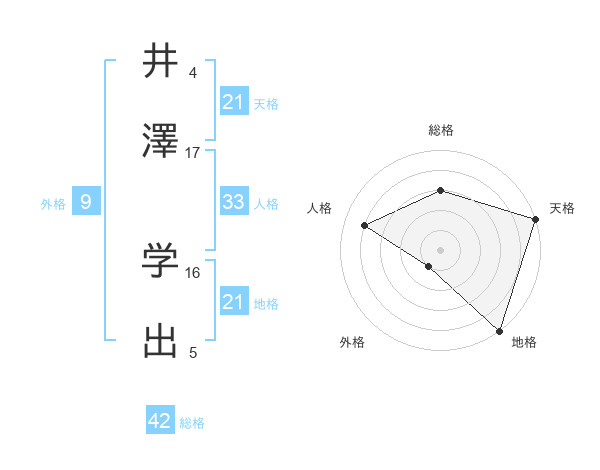 井澤 学出さんの地格は21画の5点!