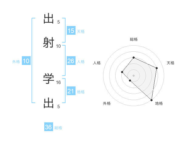 出射 学出さんの天格は15画の4点!