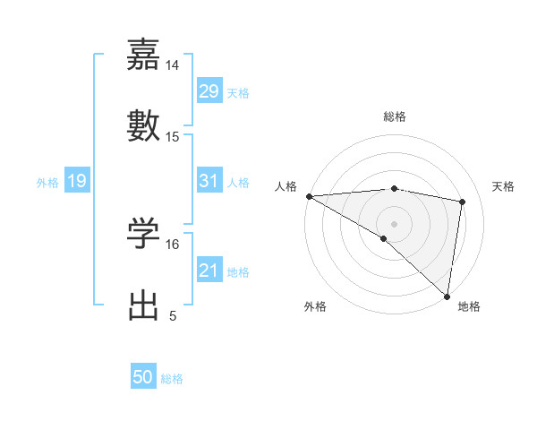 嘉數 学出さんを姓名の画数から五運を鑑定