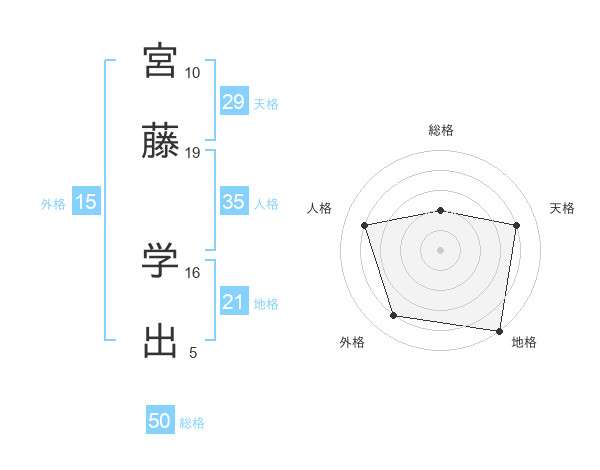 宮藤 学出さんを姓名の画数から五運を鑑定