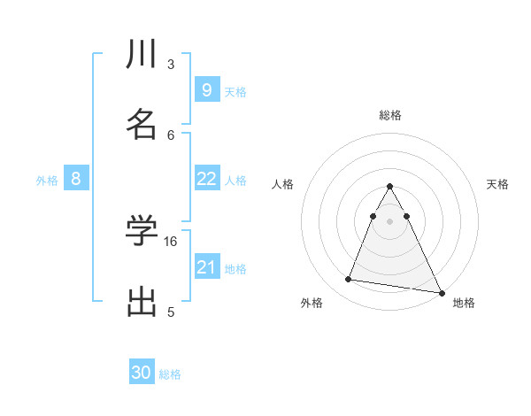 川名 学出さんの総格は30画の2点!