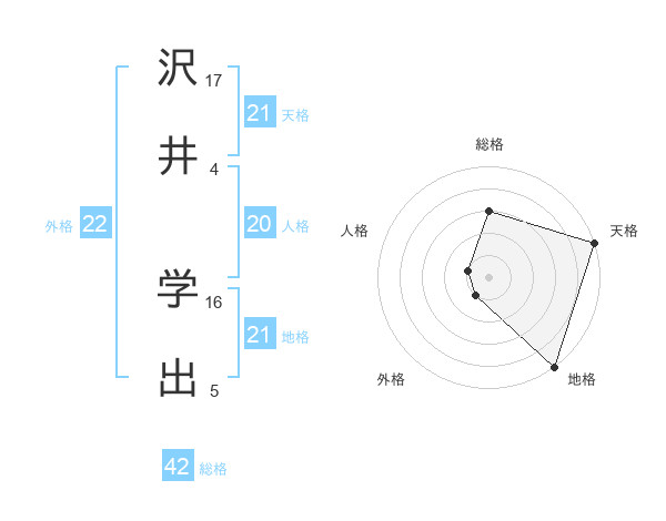 沢井 学出さんの天格は21画の5点!