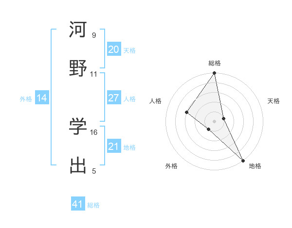 河野 学出さんの総格は41画の5点!