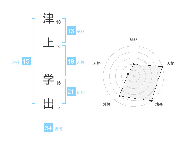 津上 学出さんの地格は21画の5点!