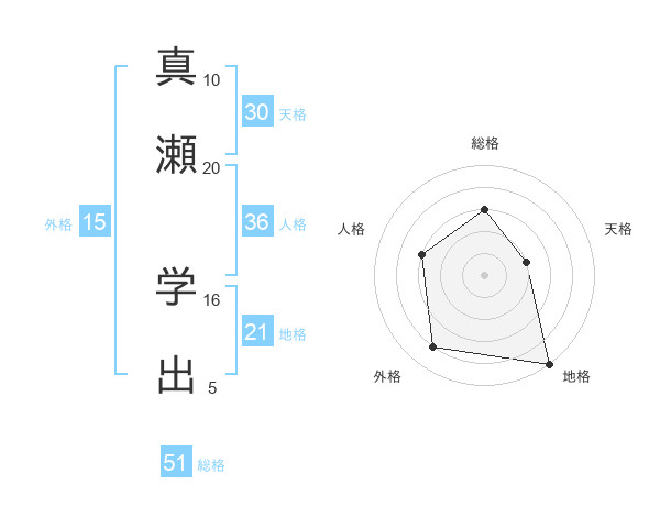 真瀬 学出さんを姓名の画数から五運を鑑定