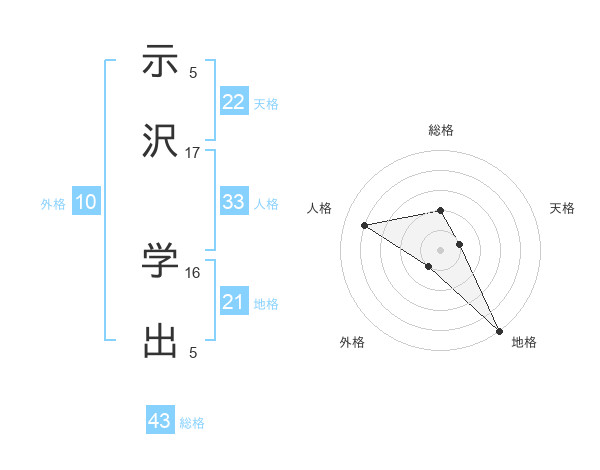 示沢 学出さんを姓名の画数から五運を鑑定
