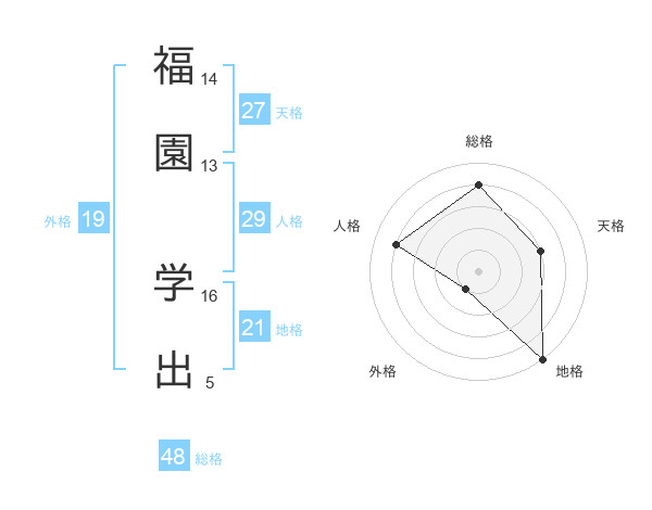 福園 学出さんを姓名の画数から五運を鑑定