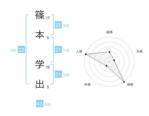 篠本 学出さんの人格は21画の5点!