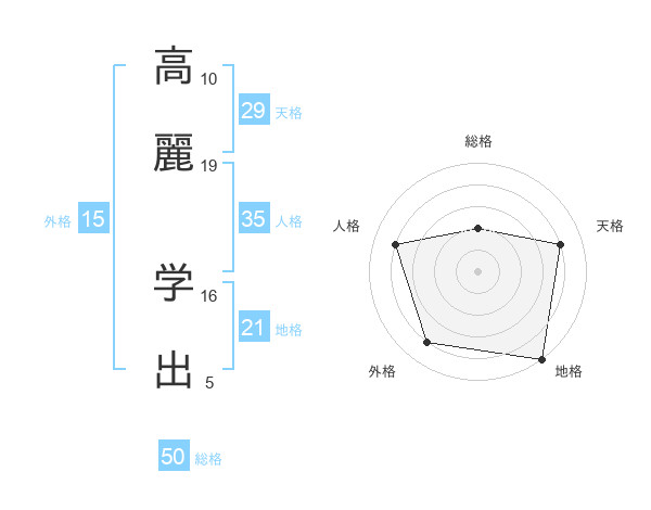 高麗 学出さんの総格は50画の2点!