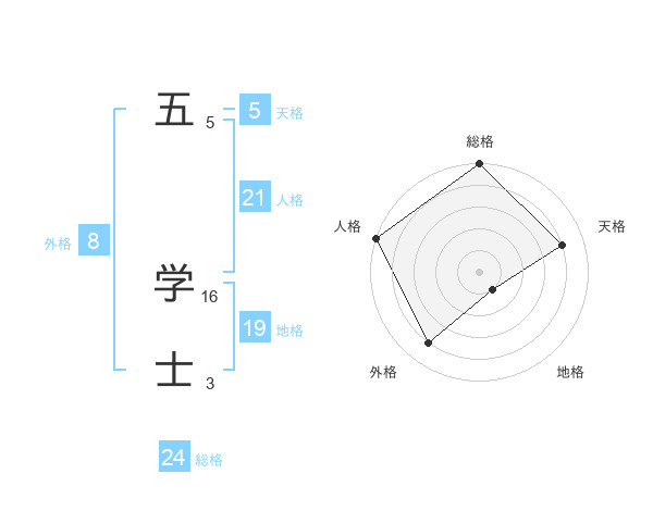 五 学士さんの総格は24画の5点!
