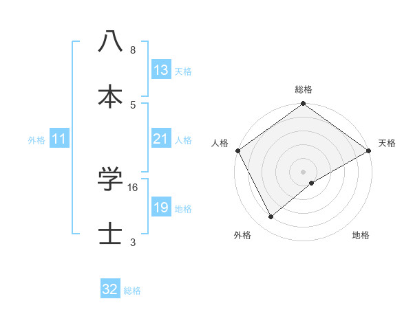 八本 学士さんの天格は13画の5点!