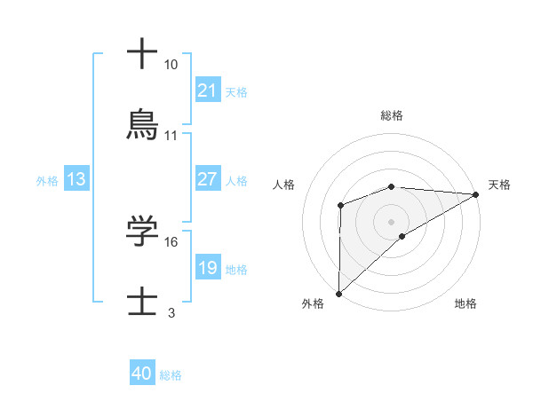 十鳥 学士さんの外格は13画の5点!