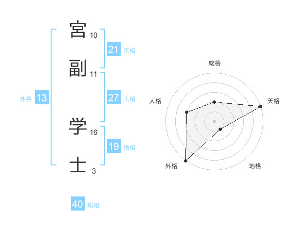 宮副 学士さんの天格は21画の5点!