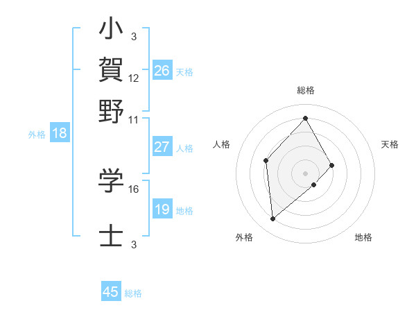 小賀野 学士さんの天格は26画の2点!