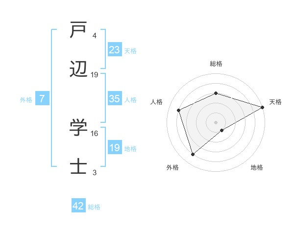 戸辺 学士さんの天格は23画の5点!