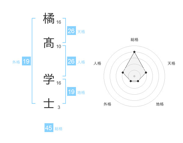橘髙 学士さんを姓名の画数から五運を鑑定
