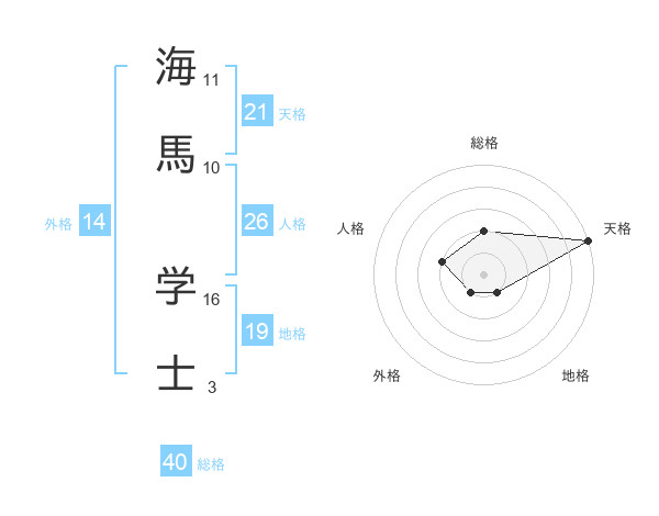 海馬 学士さんの天格は21画の5点!