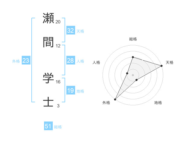 瀬間 学士さんを姓名の画数から五運を鑑定