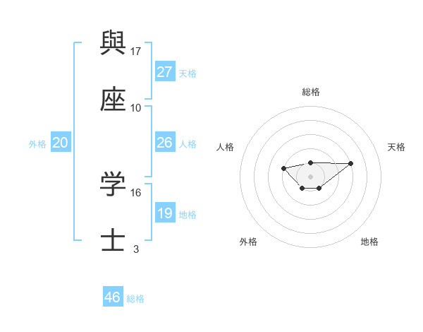 與座 学士さんの総格は46画の1点!