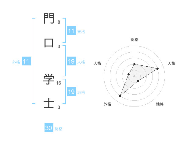 門口 学士さんの総格は30画の2点!