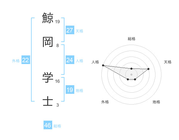 鯨岡 学士さんを姓名の画数から五運を鑑定