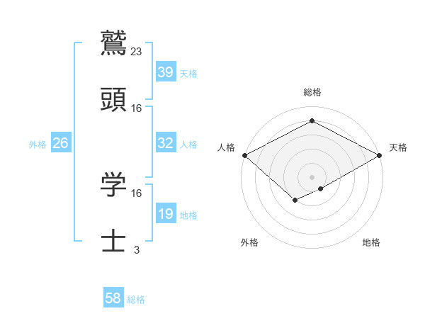 鷲頭 学士さんを姓名の画数から五運を鑑定