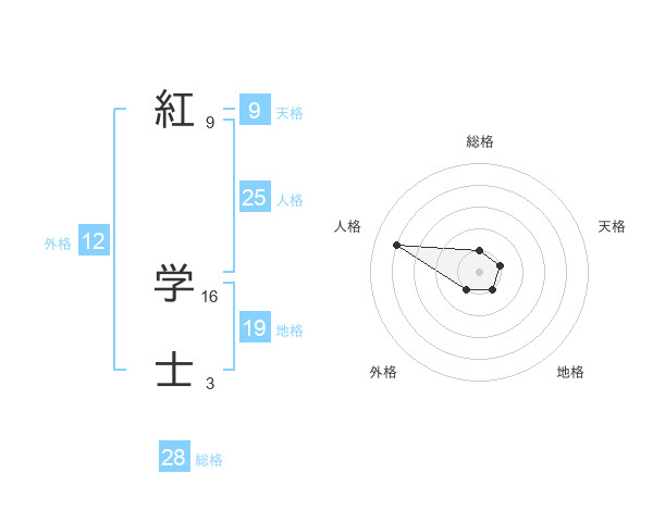 紅 学士さんの総格は28画の1点!