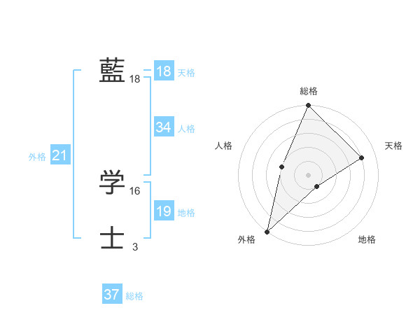 藍 学士さんの総格は37画の5点!