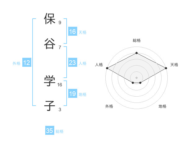 保谷 学子さんの天格は16画の5点!