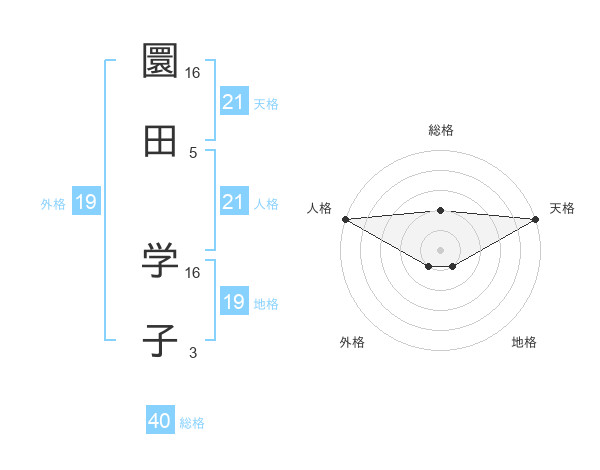 圜田 学子さんの天格は21画の5点!