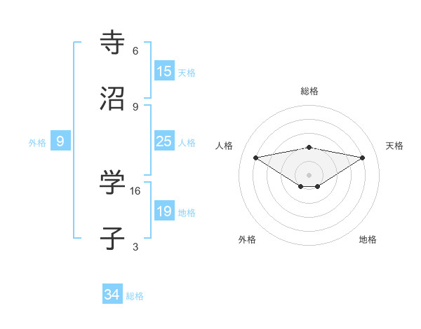 寺沼 学子さんの天格は15画の4点!