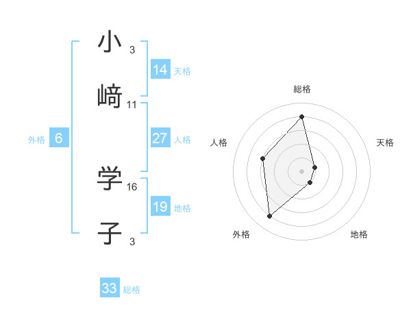 小﨑 学子さんを姓名の画数から五運を鑑定